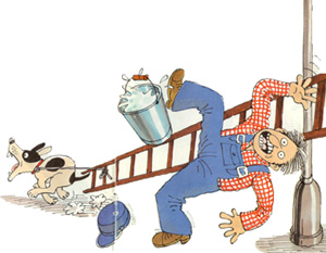 El joven se cae de la escalera.
