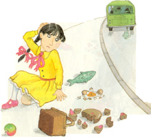 ¿Qué pasó? El autobús no paró. Pepa se cayó al suelo. El pescado, el pastel, los huevos y la manzana están en el suelo.