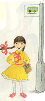 El pescado, la manzana, el pastel y los huevos están en su cesta.
